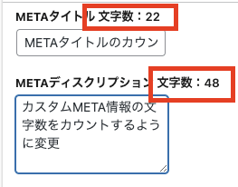 カスタムMETAタイトル・ディスクリプションの文字数を表示するように改修しました。