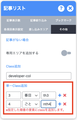記事リストパーツなどにN番目ごと単一Classを追加できる機能追加