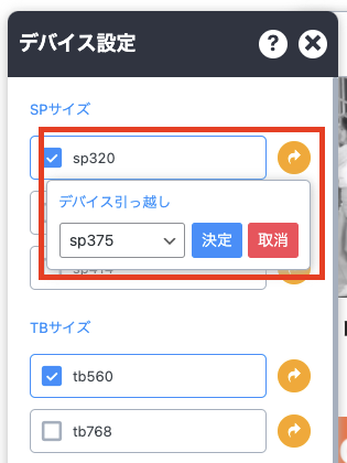 特定デバイスのデザインの設定を指定したデバイスへ移動できる機能を追加しました。