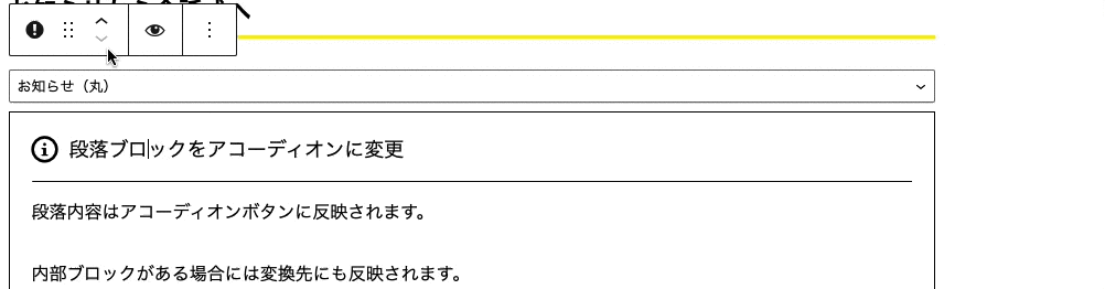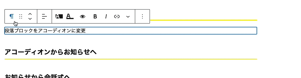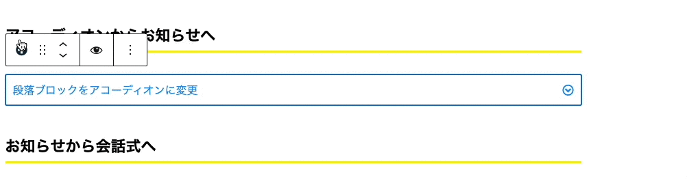 アコーディオンブロック、お知らせブロック、会話式ブロック3つのブロックを各ブロック同士に変換ができるように改修しました。