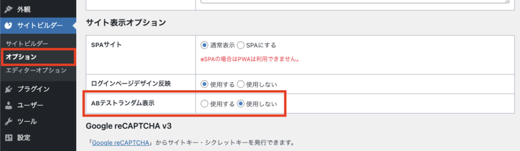 「ABテストランダム表示」を「使用する」にすることで、メインデザインをアクセスした時に、メイン+登録したABテストデザインからランダムで表示されるようになります。