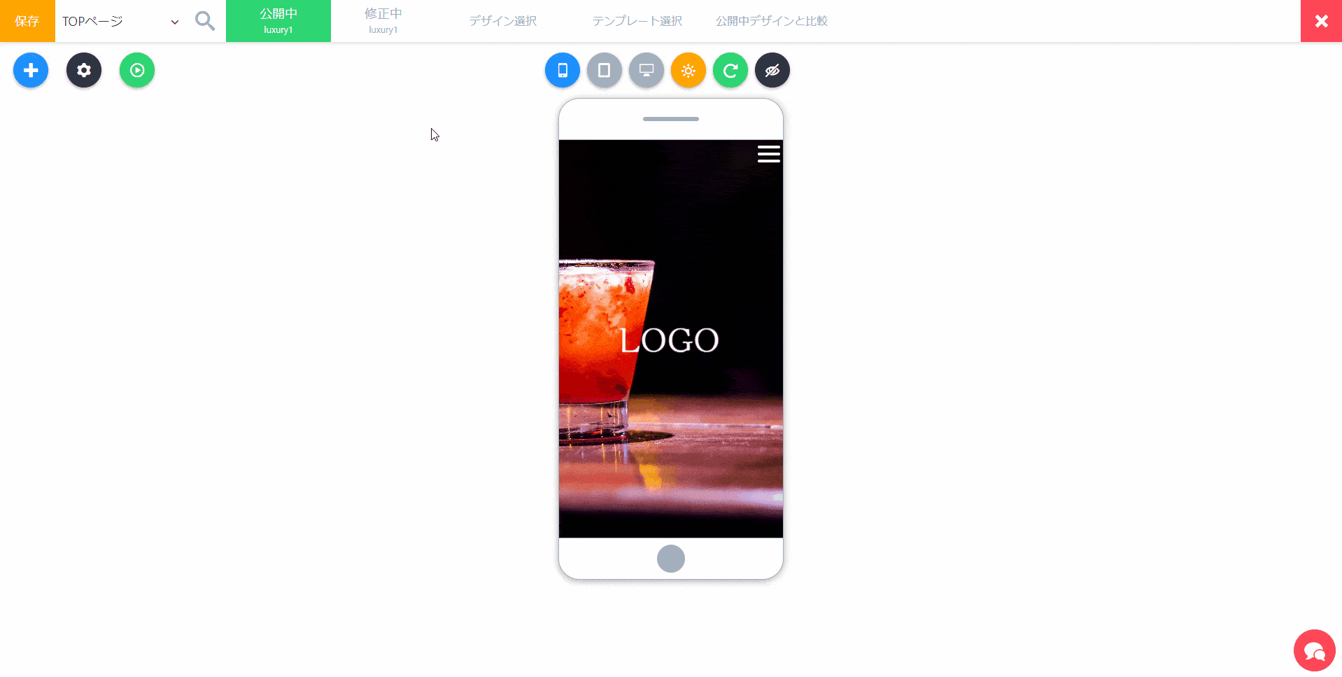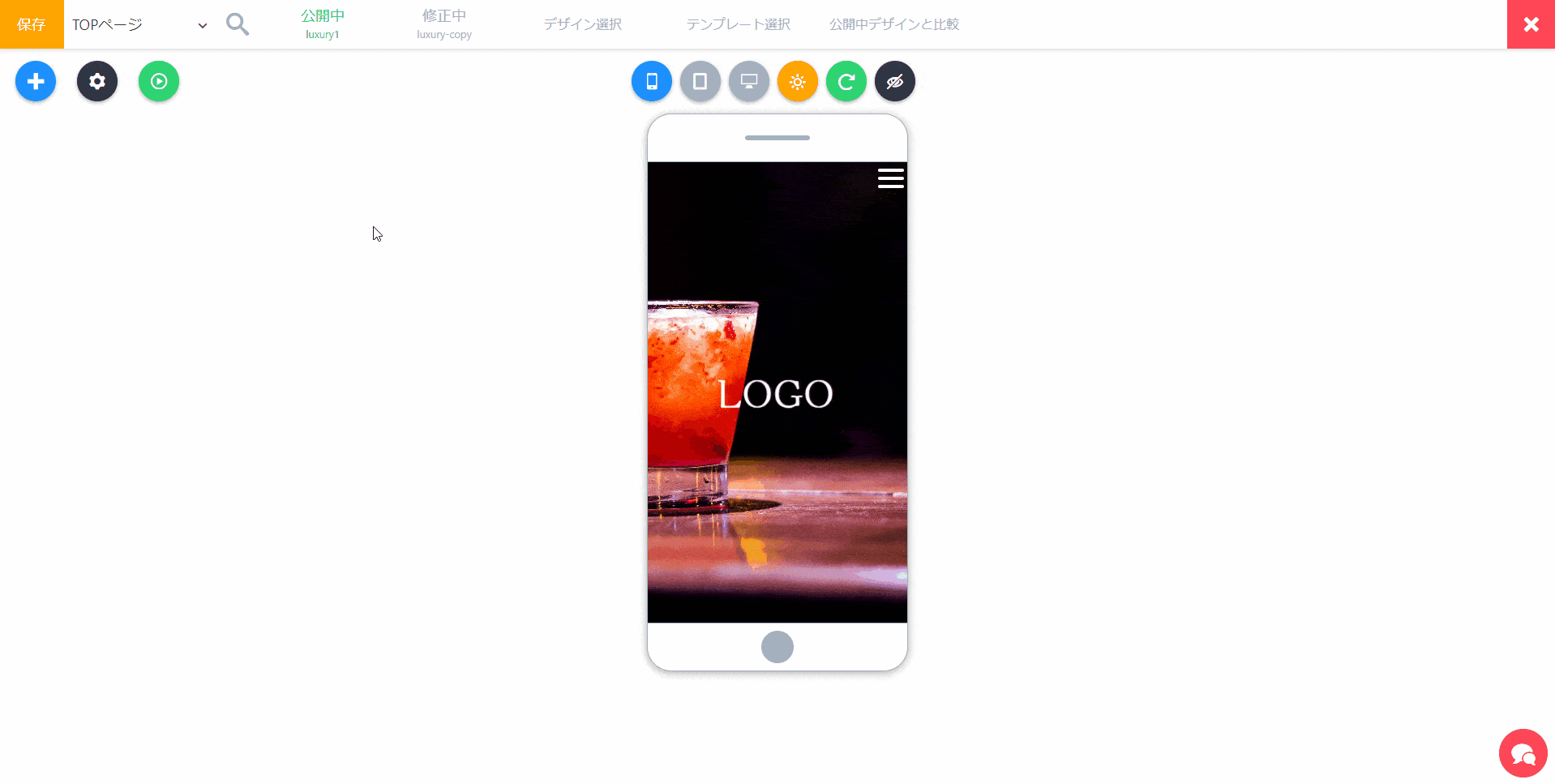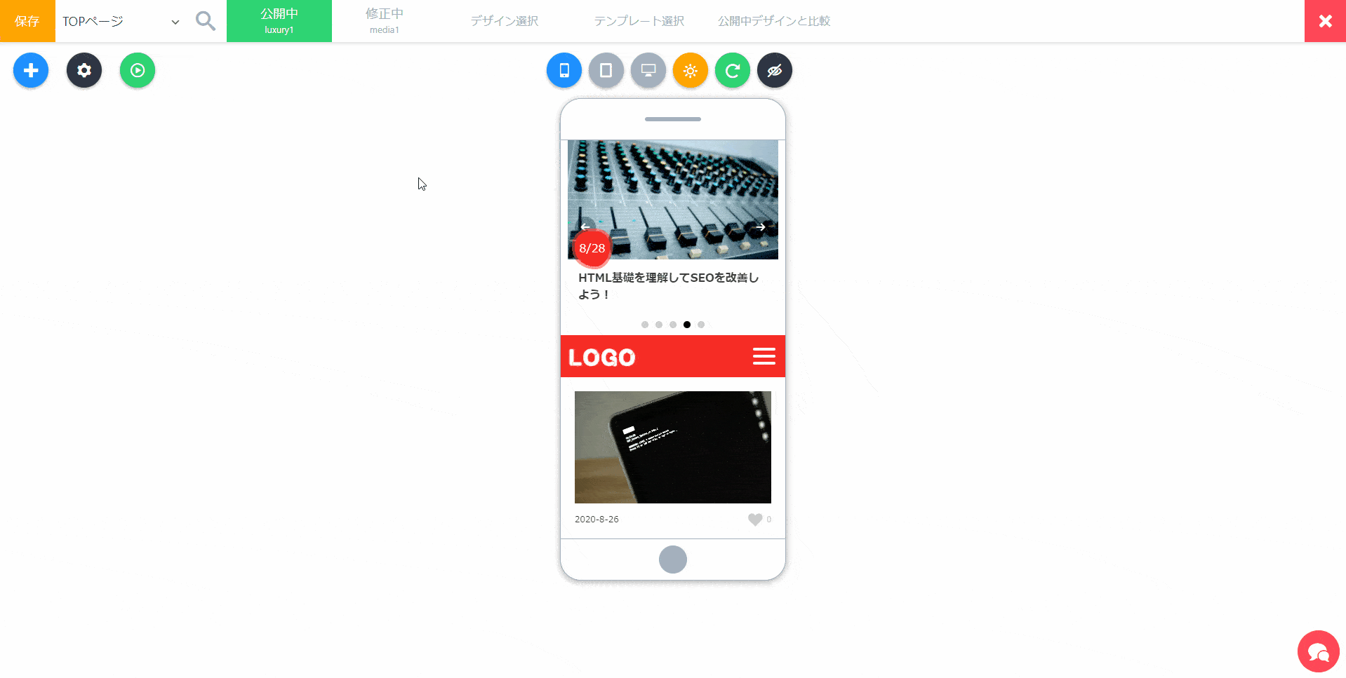 当たり前ですが、現在修正中のデザインを各デバイス(スマホ・タブレット・PC)ごとに確認しながら、リアルタイムで修正ができます!